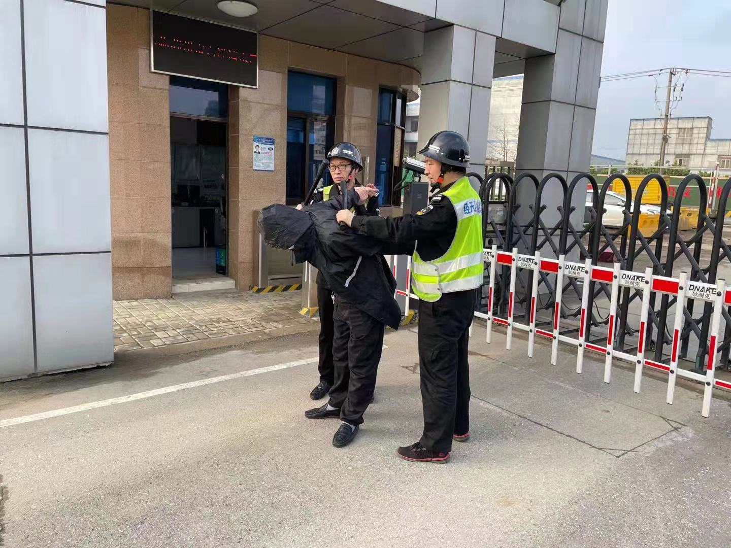 “紅藍(lán)對抗”系列演練以“外來尋釁滋事者強(qiáng)闖水廠、大廳”為主題。演練開始,一名不明身份人員欲強(qiáng)闖供水生產(chǎn)服務(wù)區(qū)域,情況“危急”。保安隊(duì)長迅速帶領(lǐng)保安人員趕赴現(xiàn)場,同時(shí)向?qū)俚嘏沙鏊娫拡?bào)警?,F(xiàn)場保安人員相互配合,使用警棍、鋼叉及盾牌將“入侵”男子制服并擒獲,最后移交公安派出所,有效控制事態(tài)發(fā)展。演練結(jié)束后,公司相關(guān)部門及時(shí)開展演練流程分析,查找不足,及時(shí)糾正問題。