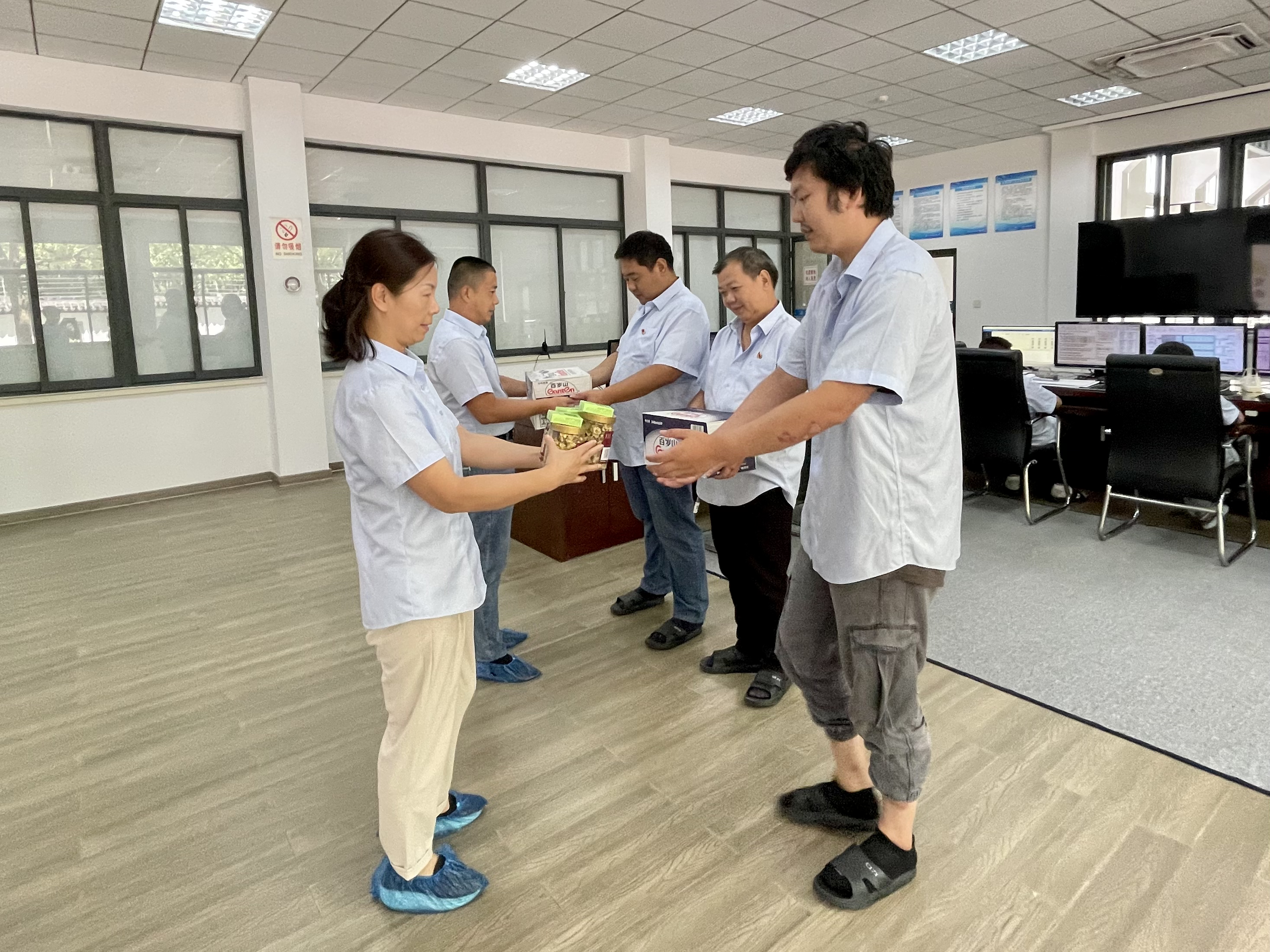 目前正值盛夏,天氣炎熱潮濕,為表達(dá)對一線職工們的慰問和關(guān)懷,市自來水公司胥江水廠、相城水廠與白洋灣水廠分工會(huì)采購了礦泉水、菊花茶、風(fēng)油精、人丹等防暑物資,親手送到生產(chǎn)一線職工和外包人員的手中。