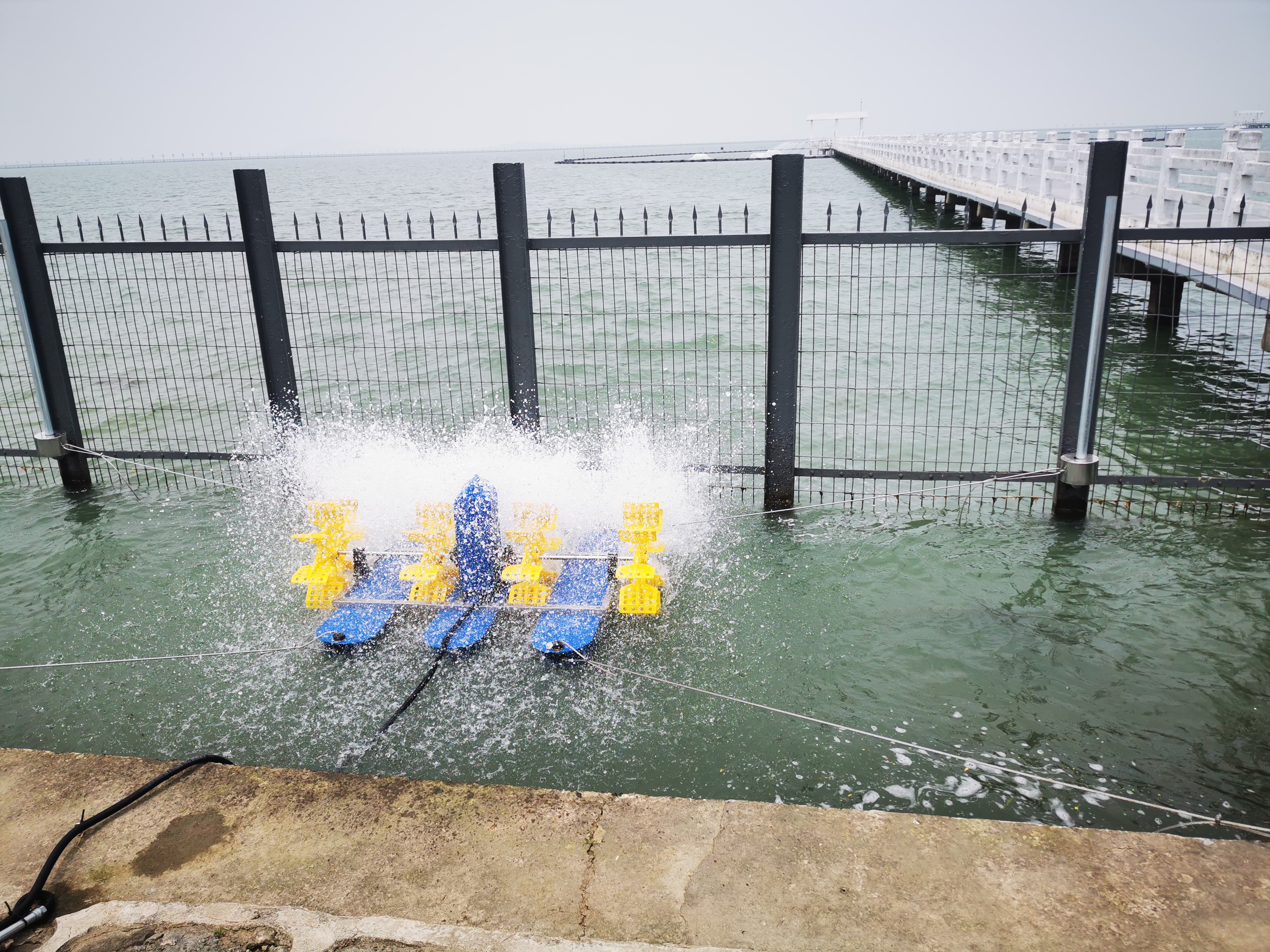 一、新增工藝管控措施,降低水質(zhì)突變風(fēng)險(xiǎn)。為有效應(yīng)對(duì)藍(lán)藻暴發(fā)帶來(lái)的水質(zhì)挑戰(zhàn),今年上半年,白洋灣水廠提前完成了水源地藍(lán)藻防控項(xiàng)目,在水源地現(xiàn)場(chǎng)增設(shè)了圍格架空浮箱、增氧曝氣設(shè)備、推流裝置以及配套的10kV箱變。同時(shí),在水源泵站內(nèi)新建了粉末活性炭應(yīng)急自動(dòng)投加系統(tǒng),并配置了無(wú)人自動(dòng)監(jiān)測(cè)船。