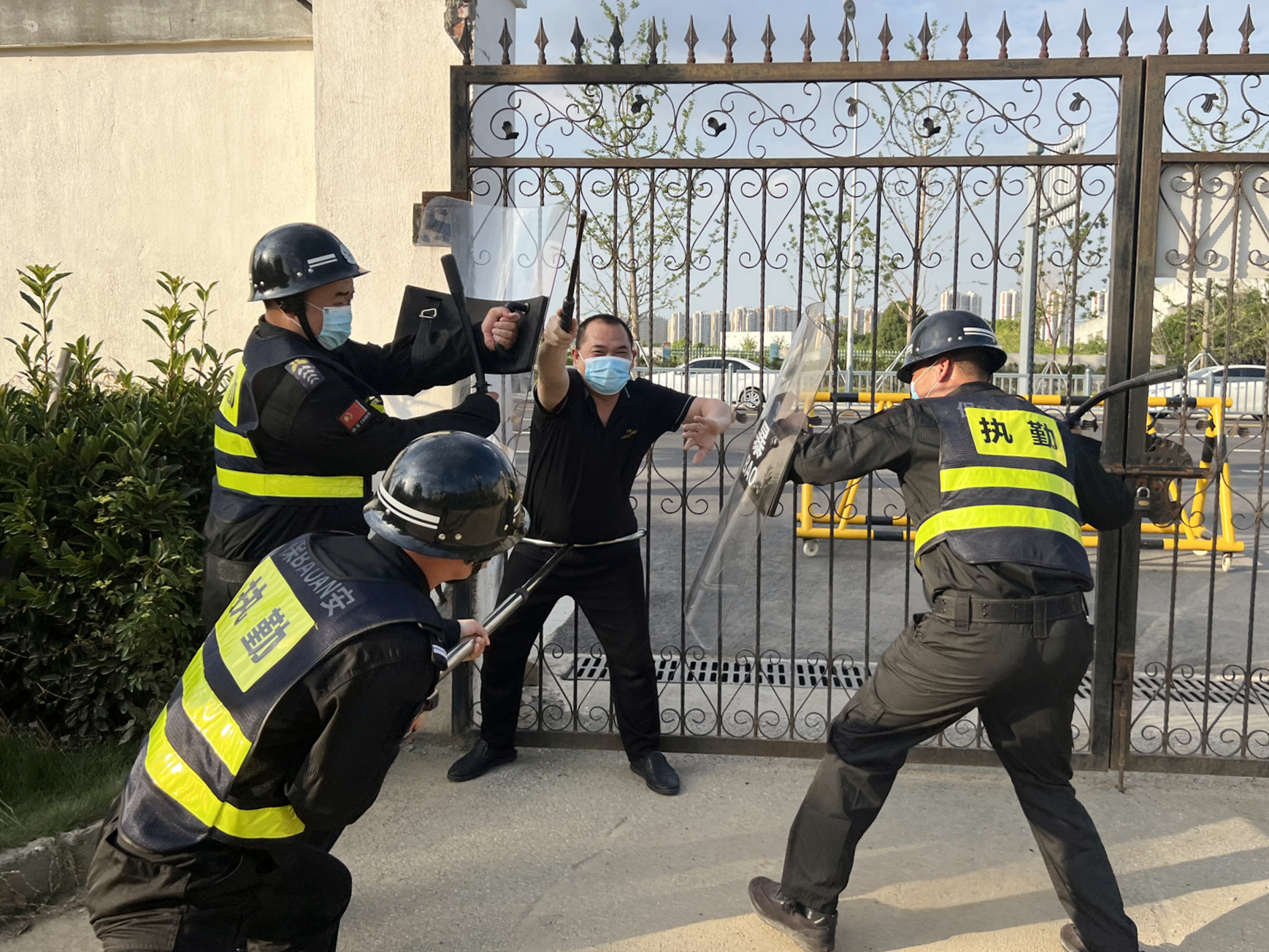 總指揮一聲令下,實戰(zhàn)演練拉開帷幕:監(jiān)控值班人員接到電子圍欄16防區(qū)北大門地段報警,發(fā)現(xiàn)可疑人員試圖翻越鐵門入侵廠區(qū),隨即組織安保力量趕赴現(xiàn)場,啟動CK報警系統(tǒng)與公安機關(guān)取得聯(lián)系,可疑人員第一時間得到控制,應(yīng)急狀態(tài)解除。